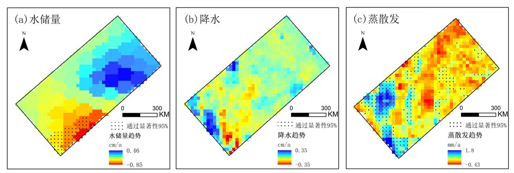 (2)中缅“人字形”走廊水储量、降水量、蒸散发量空间变化分析