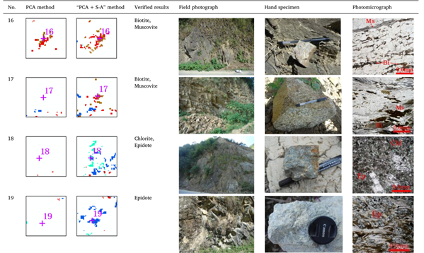 遥感已广泛应用于热液蚀变带的解译,并可支持地质野外成图,对高难地区的矿产勘查具有重要意义。然而,复杂地形的蚀变信息往往较弱,传统的遥感蚀变提取方法难以检测,如何有效地提取微弱的蚀变信息是一项具有挑战性的任务。本研究采用基于多重分形理论的光谱-面积(S-A)方法对遥感数据进行处理,提出了“主成分分析(PCA)+S-A”的新方法作,用来提取复杂地区热液蚀变弱信息。为了验证该方法的有效性,基于ASTER数据,对比分析了“主成分分析+S-A”方法与传统的主成分分析方法的矿化蚀变提取效果。以云南无量山为例,研究了该地区的绿泥石、绿帘石、黑云母和白云母蚀变信息。通过野外调查和岩石学研究表明:(1)“PCA +S-A”方法的平均检测精度为90.80%,比PCA方法高9.34%;(2)在传统主成分分析方法无法探测到弱蚀变的覆盖区,“主成分分析+ S-A”方法可以成功提取;(3)在植被覆盖度(FVC)大于0.8的地区,利用该方法对热液蚀变的提取效率较低,有待进一步研究。