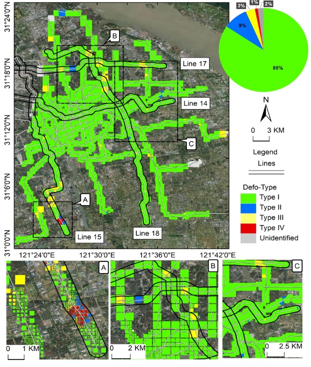● 论文发现地铁沿线形变主要与浅层地表形变相关。